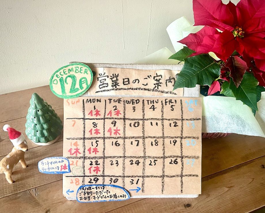12月のお休みと、一部営業時間の変更についてご案内いたします。