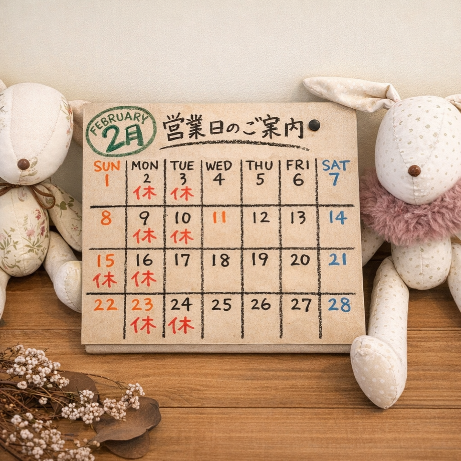 2月は、定休日の月曜日に加え、火曜日・日曜日にもお休みをいただきます。