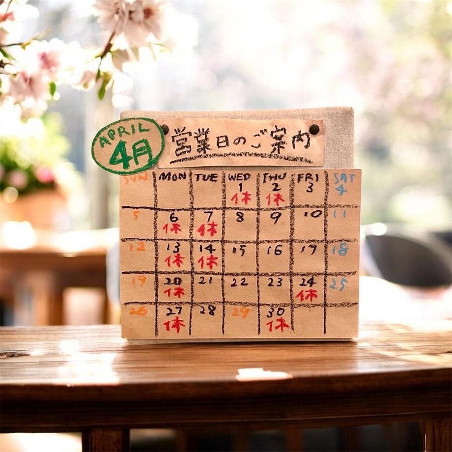 4月は定休日に加え、下記の日程でお休みをいただきます。